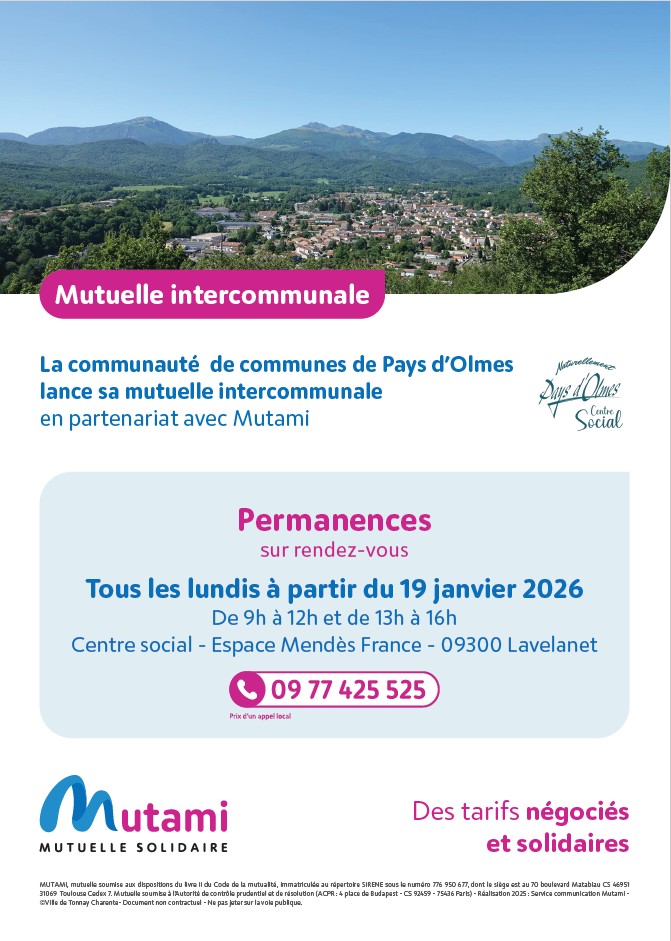 Dans le cadre de ce partenariat, les mutuelles se sont engagées à déployer une présence active au coeur de la vie locale avec des permanences régulières au Centre Social de LAVELANET-Espace Pierre Mendès France, 09300 LAVELANET.